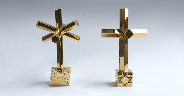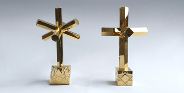 This pair of sculptures made in collaboration with Jacob Chandler are our thesis on the vision of Constantine. They have previously been exhibited in Shrewsbury Museum and Magdalene College, Cambridge. They are suitable for places of worship and smaller exhibition spaces, including working spaces such as lobbies.