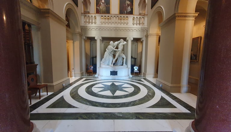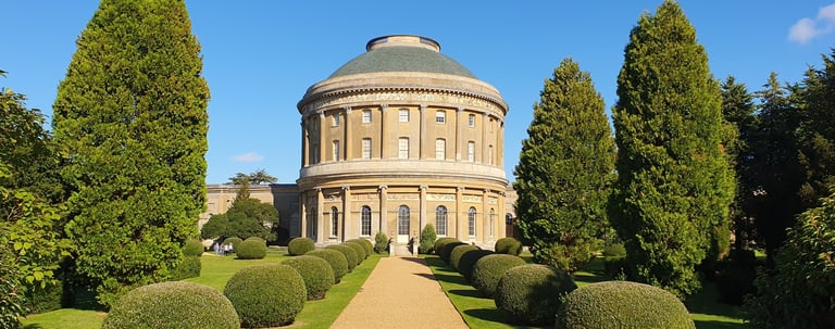 Probably the most imposing house in Suffolk, and certainly the most eccentric — literally eccentric, because the house is covered from top to bottom in ellipses. From the central rotunda to the egg-and-dart decoration, there is hardly a single true circle in the entire estate.