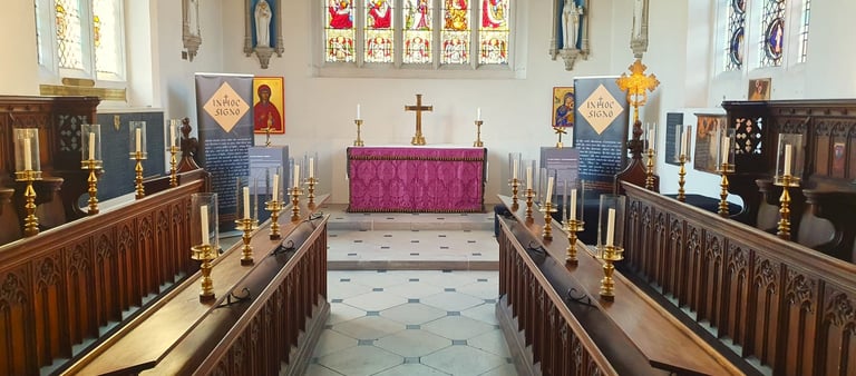A proud moment for James Syrett as In Hoc Signo is exhibited in the chapel of Magdalene College, Cambridge, his alma mater.